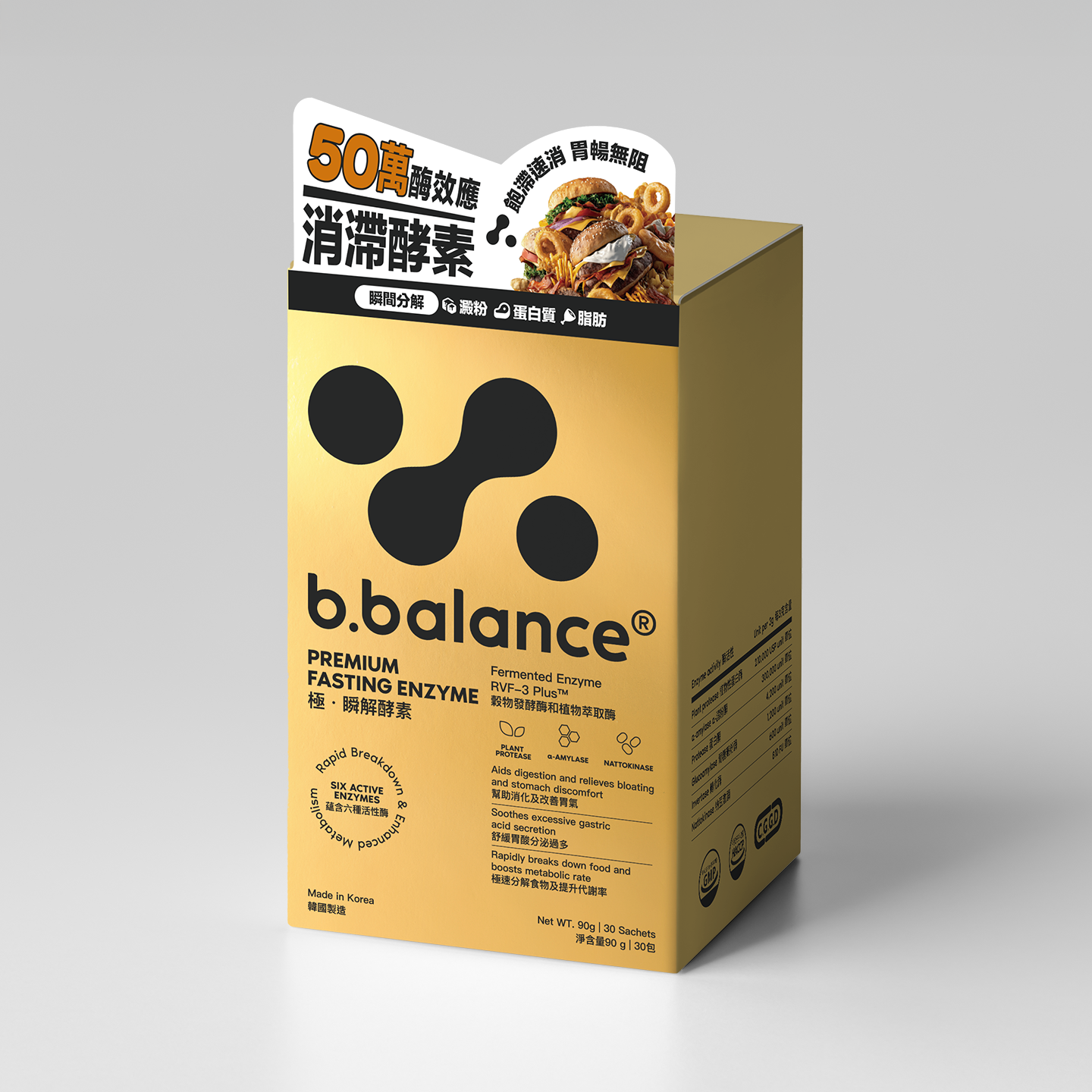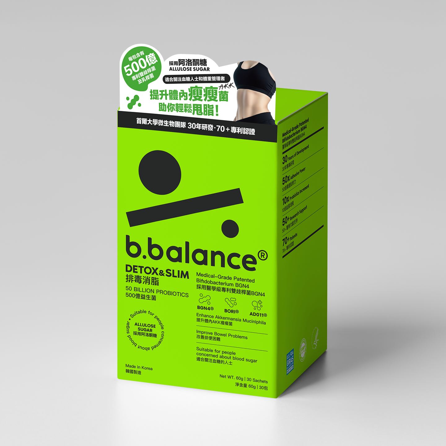 採用首爾大學微生物團隊研發的專利雙歧桿菌成分,能有效分解腸道毒素,顯著改善排便困難及提升免疫力,讓腸道運作更規律,全面開啟身體平衡的新紀元
